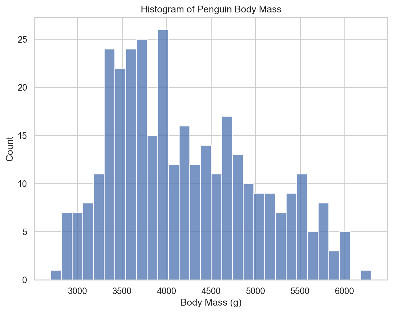 penguins.head()| species | island | bill_length_mm | bill_depth_mm | flipper_length_mm | body_mass_g | sex | year | |