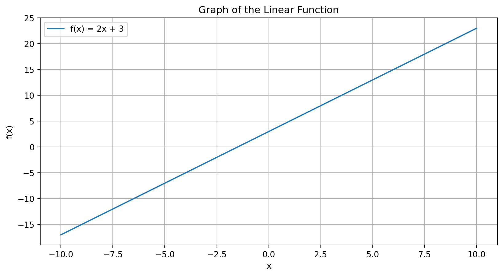 plt.plot(x, y, label='f(x) = 2x + 3')